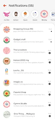 - Interactive Chat Icons: The design includes interactive icons that enhance the user experience. For example, icons for favorite shops or frequently messaged sellers appear, making it easy for users to revisit these stores or continue conversations.